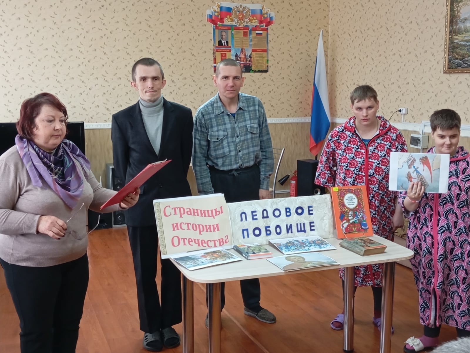 В литературно-познавательном клубе «Феникс» (Лотиковский психоневрологический интернат) прошёл познавательный час «Страницы истории Отечества: Ледовое побоище», посвящённый Дню Победы русских воинов князя А. Невского над немецкими рыцарями на Чудском озере. В ходе мероприятия члены клуба узнали о важном историческом событии — Ледовое побоище и о великом полководце А. Невском познакомились с биографией князя, его становлением и успехами. Победа на Ледовом побоище показала, что князь А. Невский проявил свой полководческий талант, а русское войско продемонстрировало образец военной тактики и стратегии того времени.